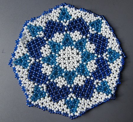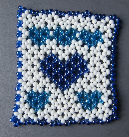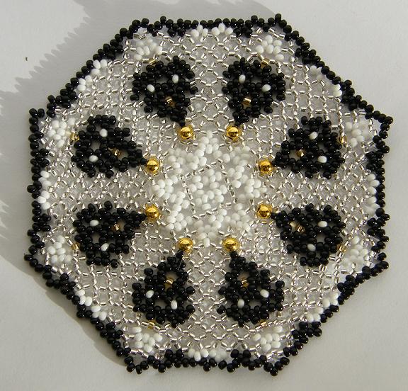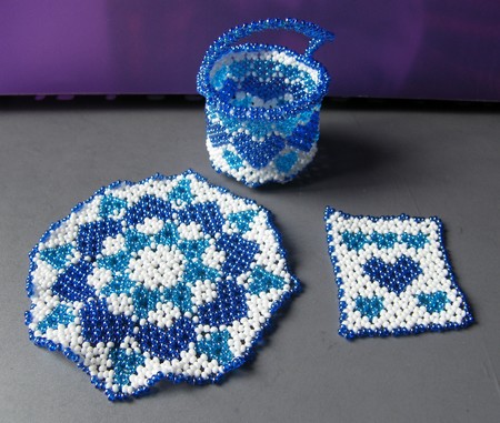 participation au perlage surprise de novembre, le napperon vient du Olaf 884, le rond de serviette, le tableau et le sac sont des adaptations faites par les modératrices. Merci