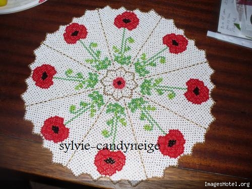Mais un petit conseil Sylvie la prochaine fois, donne ton prix avant de réaliser. Vu que tu dis "on m'a demandé" c'est donc une commande. Donc en fait c'est à toi de calculer ton prix de le proposer. Après à la personne de prendre ou laisser. parce que là tu prends le risque de te trouver un face d'une obligation de brader ton travail, ça serait très dommage, car il est magnifique ton napperon et surtout tu as bossé dur dessus ;)